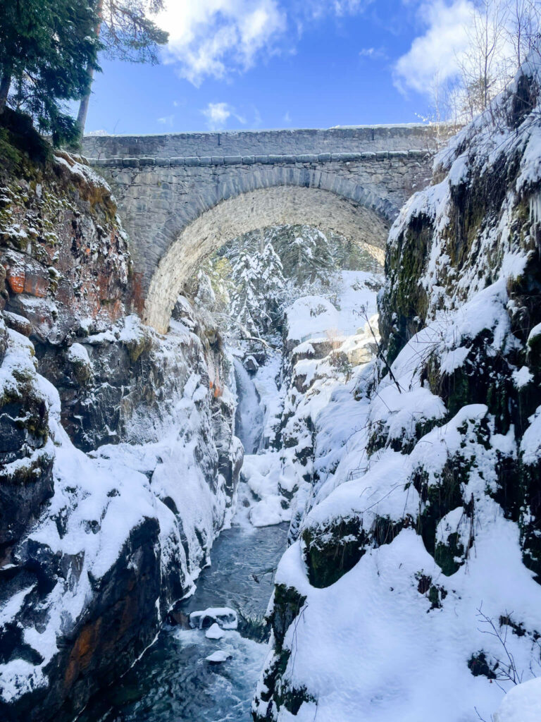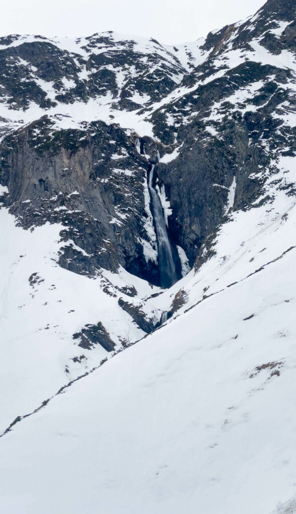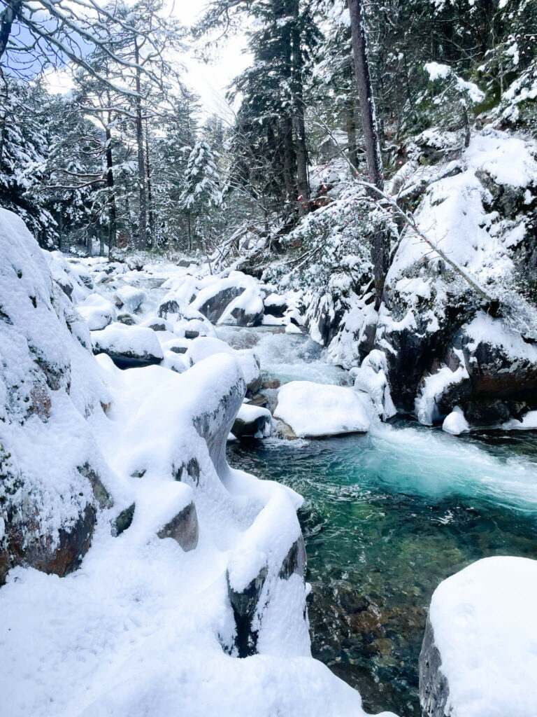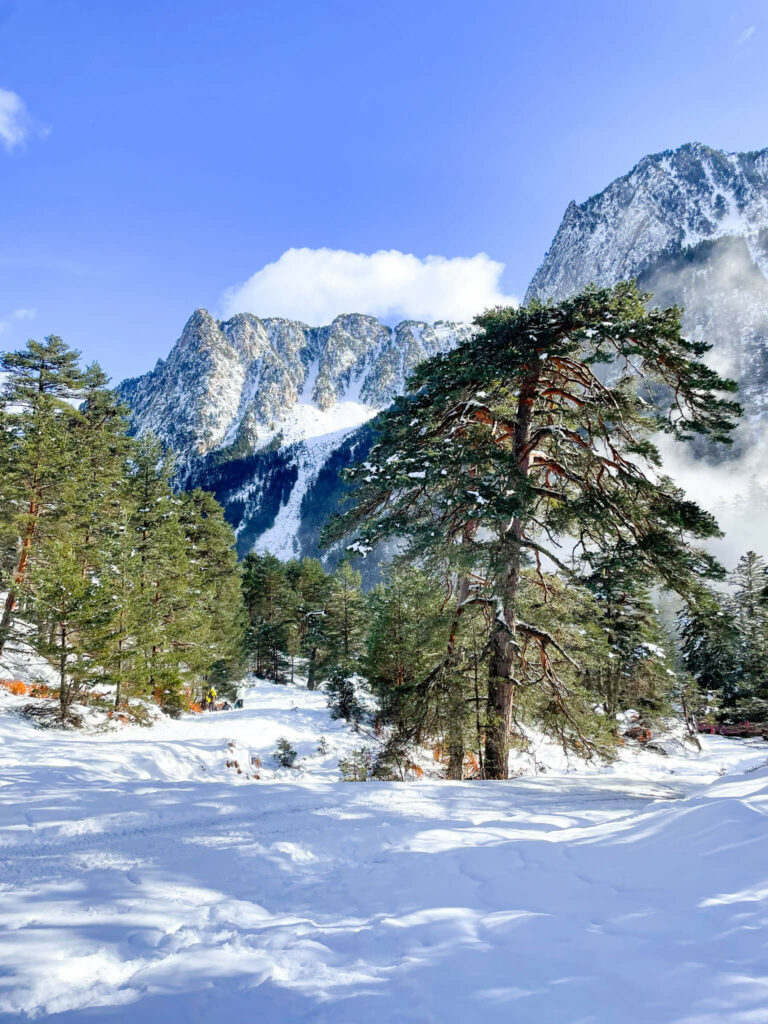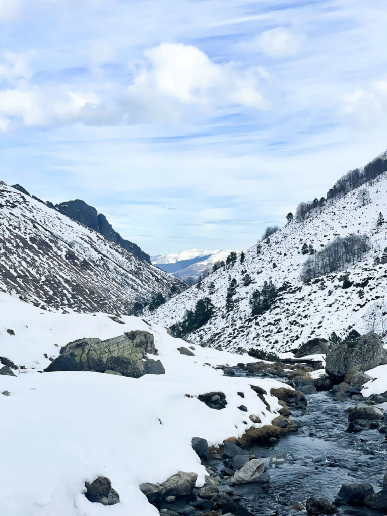 En hiver, la randonnée jusqu’au lac complet nécessite des raquettes. J’ai pu aller uniquement jusqu’à la cascade de l’Ilheou, car la neige était dure et le chemin glissant. Le sentier reste physique, même pour cette portion raccourcie. Clique ici pour voir la randonnée.