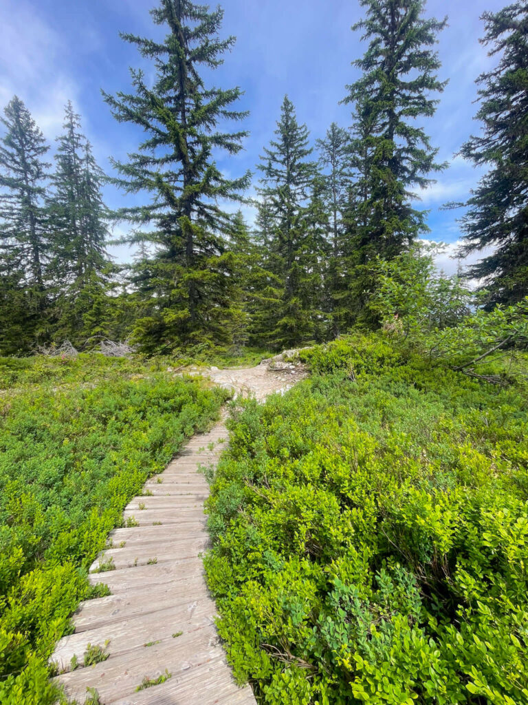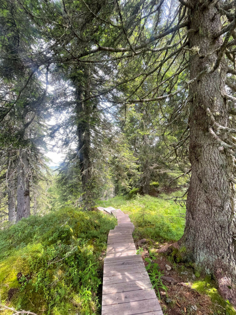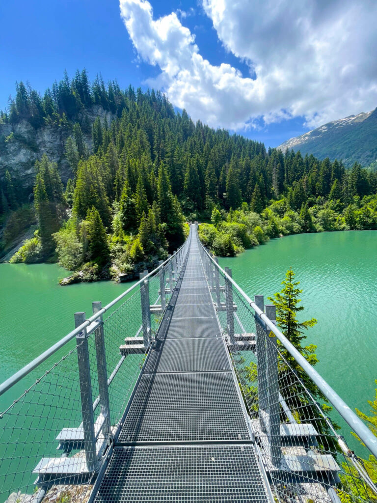 Une petite aventure aérienne avec une vue impressionnante sur le lac. Le tour complet est facile et ludique, accessible à tous. Chiens acceptés, à tenir en laisse sur la passerelle. Lien de la randonnée ici.